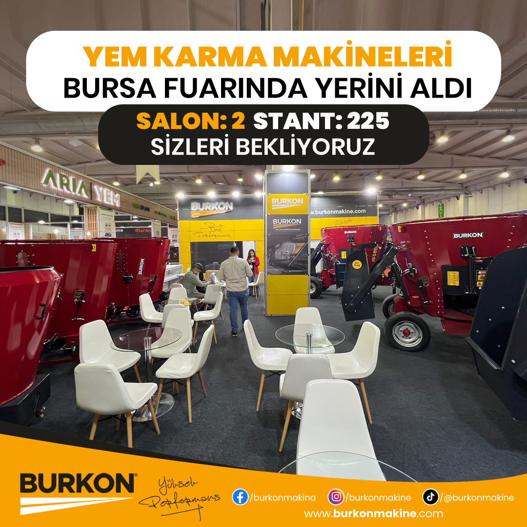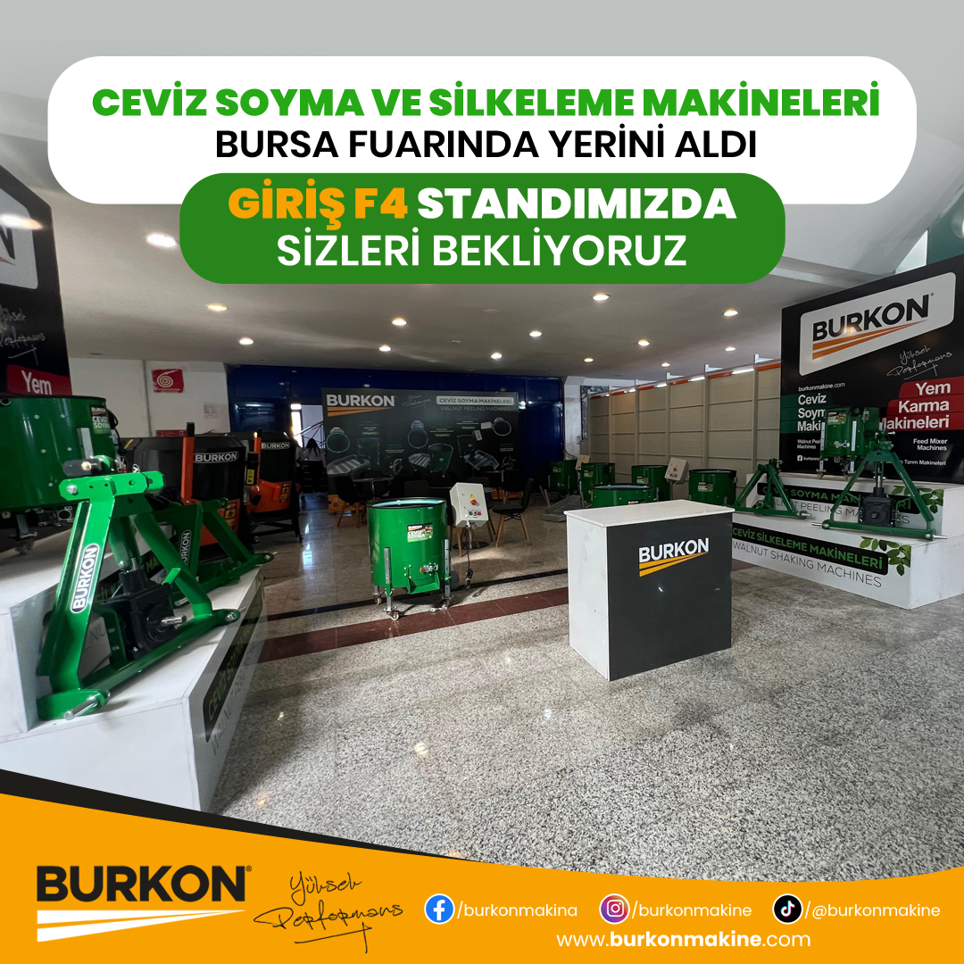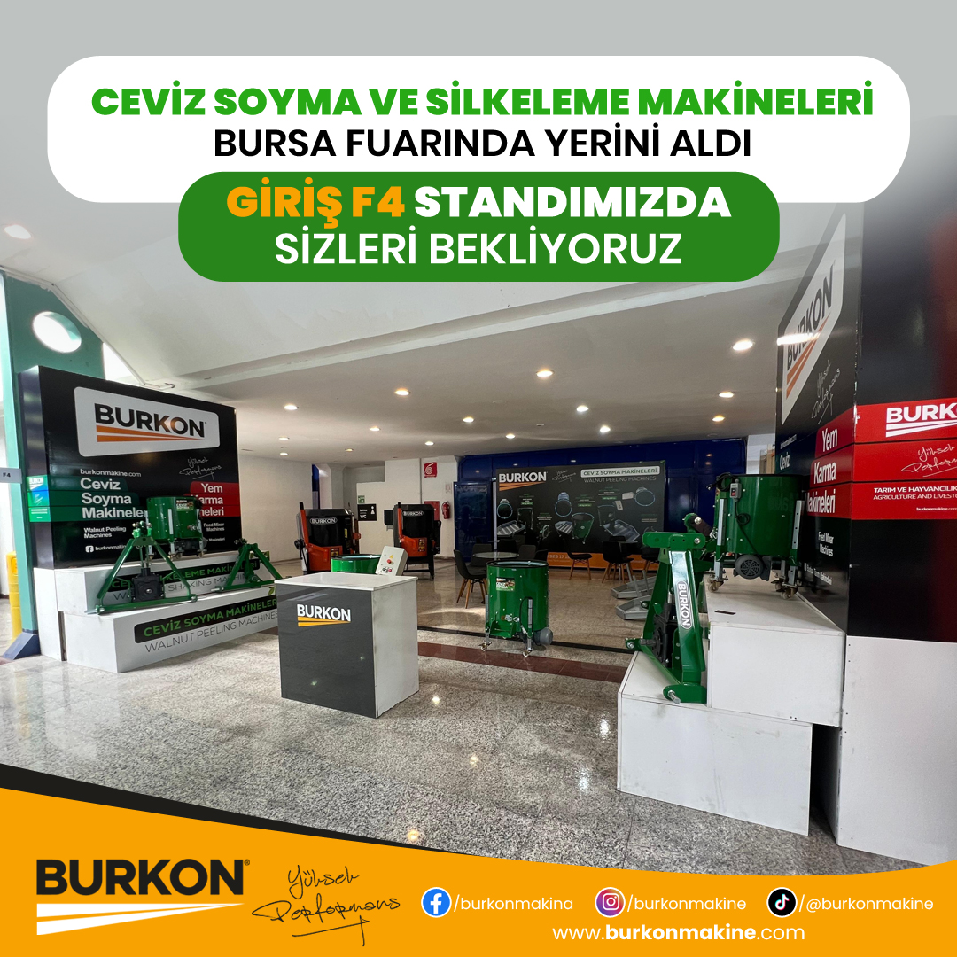 Burkon Makine olarak tarım sektörüne sunduğumuz yenilikçi ve verimlilik artırıcı çözümlerle Bursa Tarım Fuarı’nda yerimizi aldık. Çiftçilerin ve tarım sektörü profesyonellerinin ihtiyacı olan en son teknolojiye sahip makinelerimizi sergilediğimiz bu fuarda, iki ayrı stant ile siz değerli ziyaretçilerimize hizmet veriyoruz.