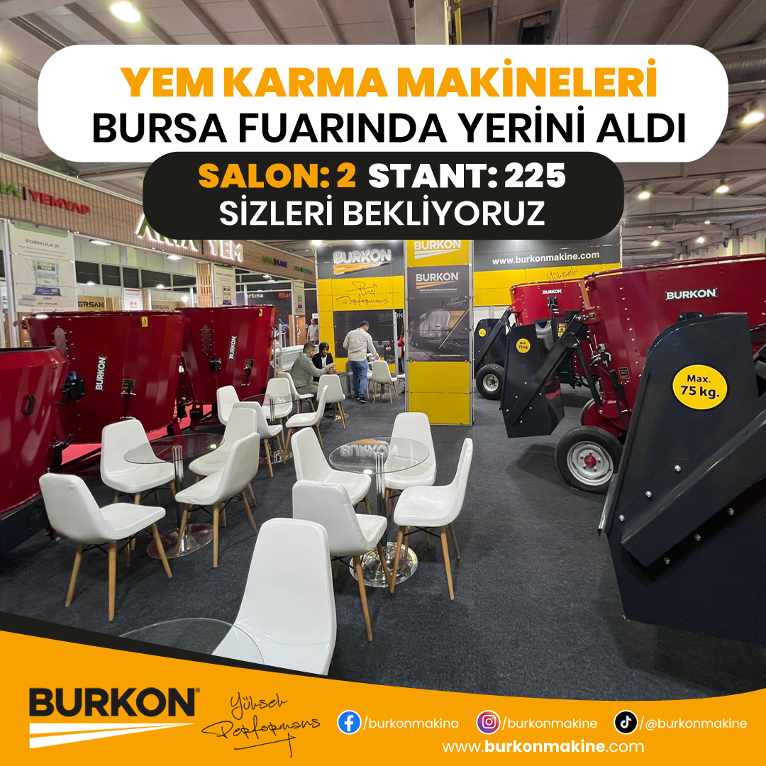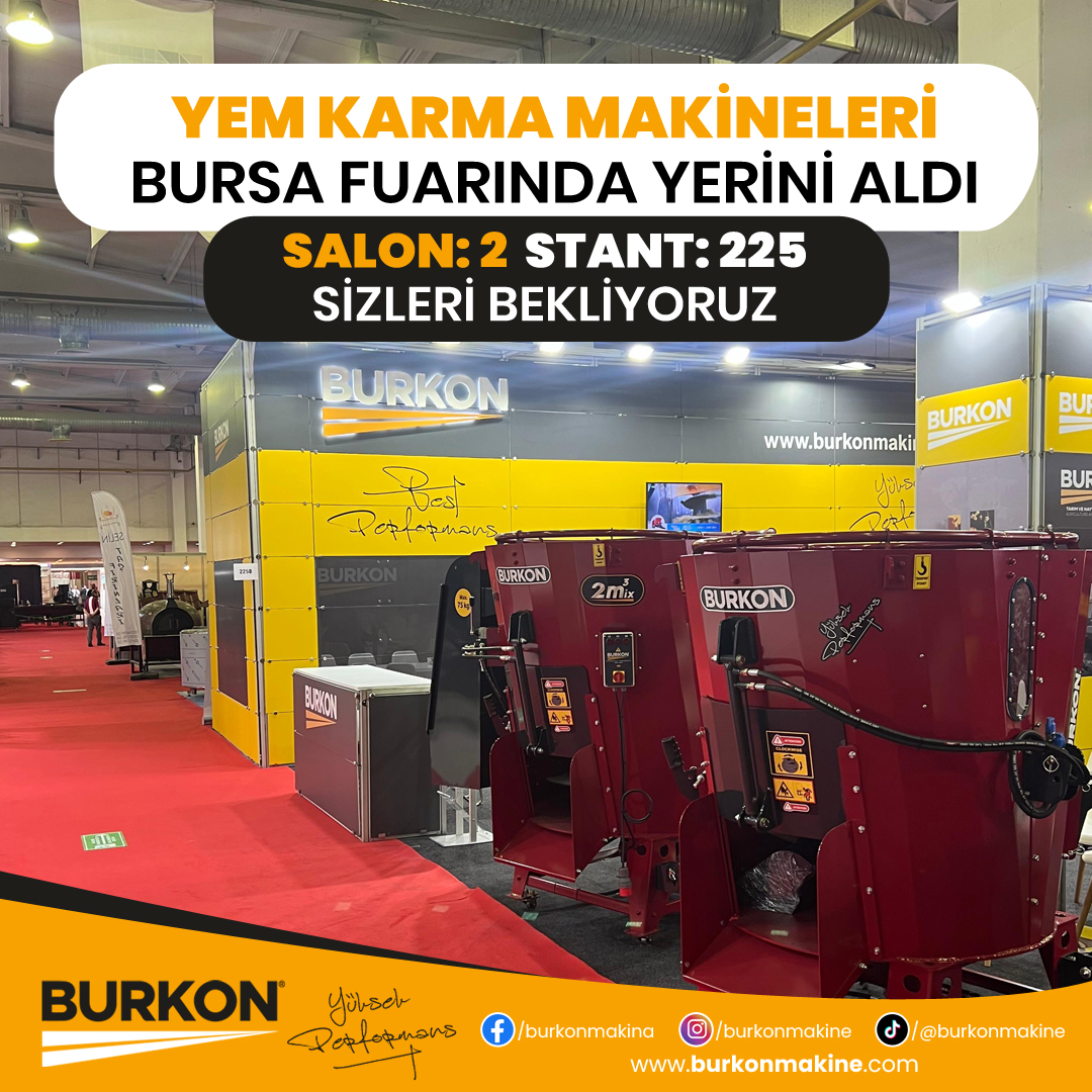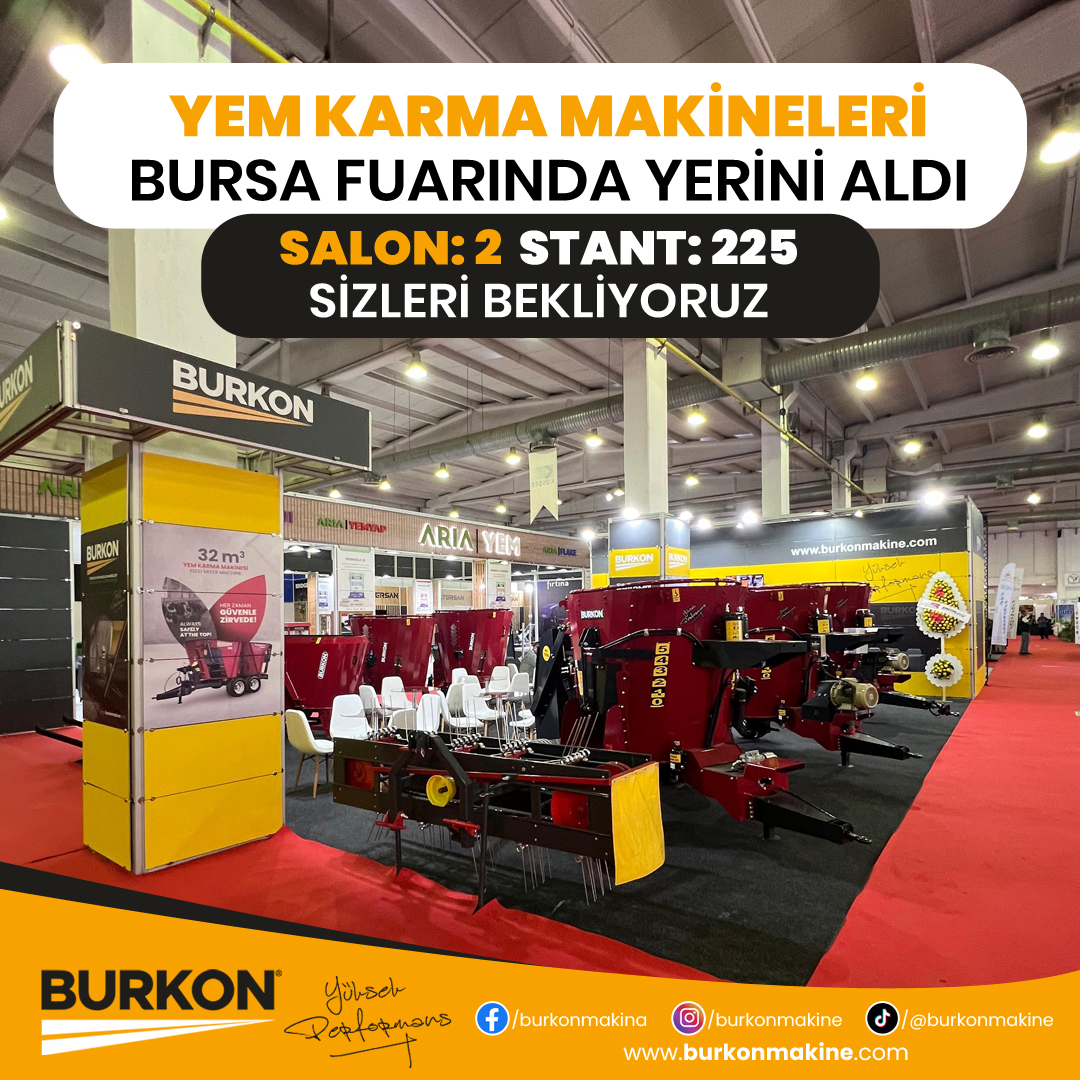 Burkon Makine olarak tarım sektörüne sunduğumuz yenilikçi ve verimlilik artırıcı çözümlerle Bursa Tarım Fuarı’nda yerimizi aldık. Çiftçilerin ve tarım sektörü profesyonellerinin ihtiyacı olan en son teknolojiye sahip makinelerimizi sergilediğimiz bu fuarda, iki ayrı stant ile siz değerli ziyaretçilerimize hizmet veriyoruz.