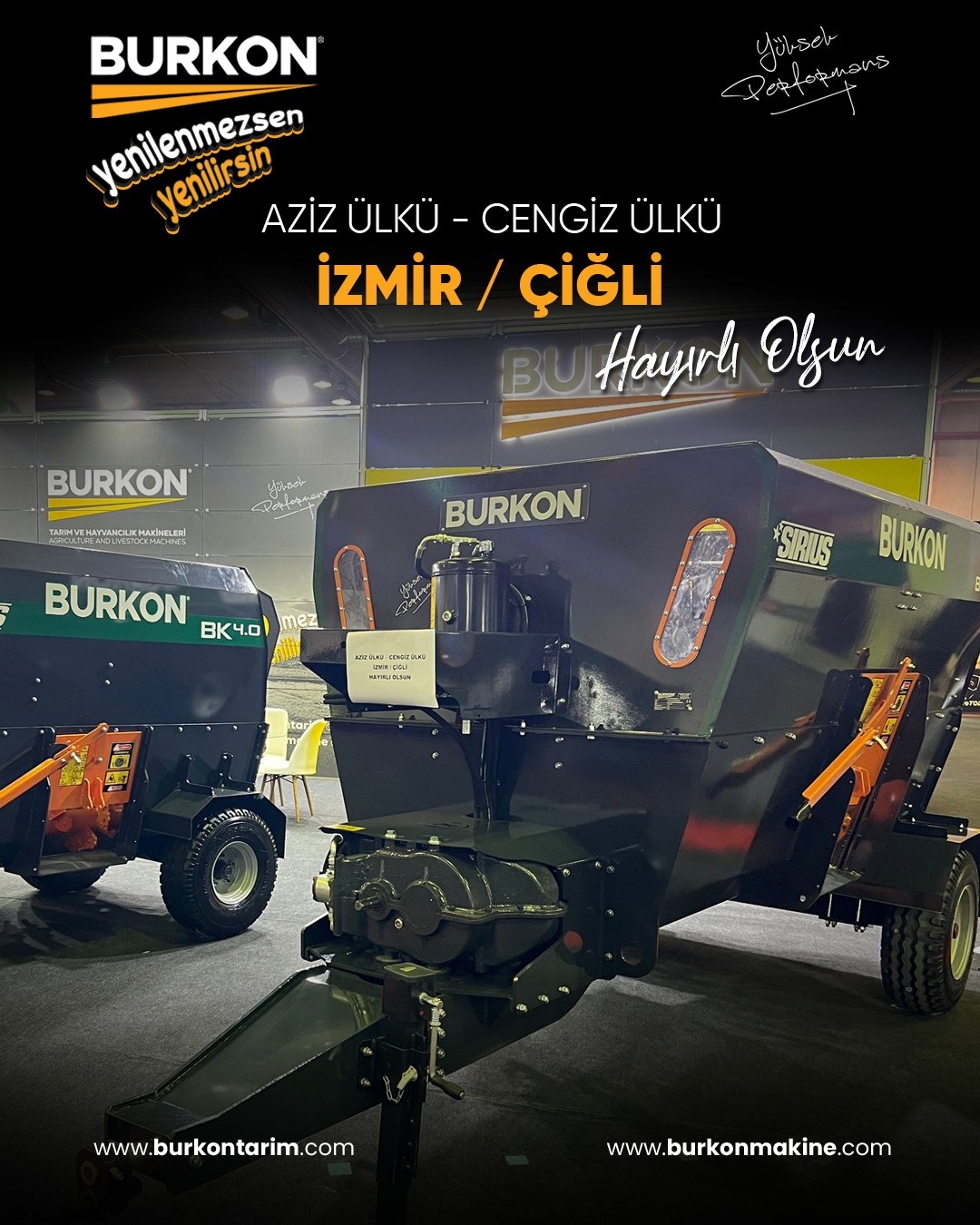 Stand ziyaretleri boyunca gerçekleştirilen teslimatlardan biri de İzmir / Çiğli bölgesinde faaliyet gösteren Aziz Ülkü ve Cengiz Ülkü çiftçilerine yapılmıştır. Teslimatı yapılan Burkon Sirius modeli, bölgedeki hayvancılık faaliyetlerine katkı sağlayacak şekilde teslim edilmiştir.