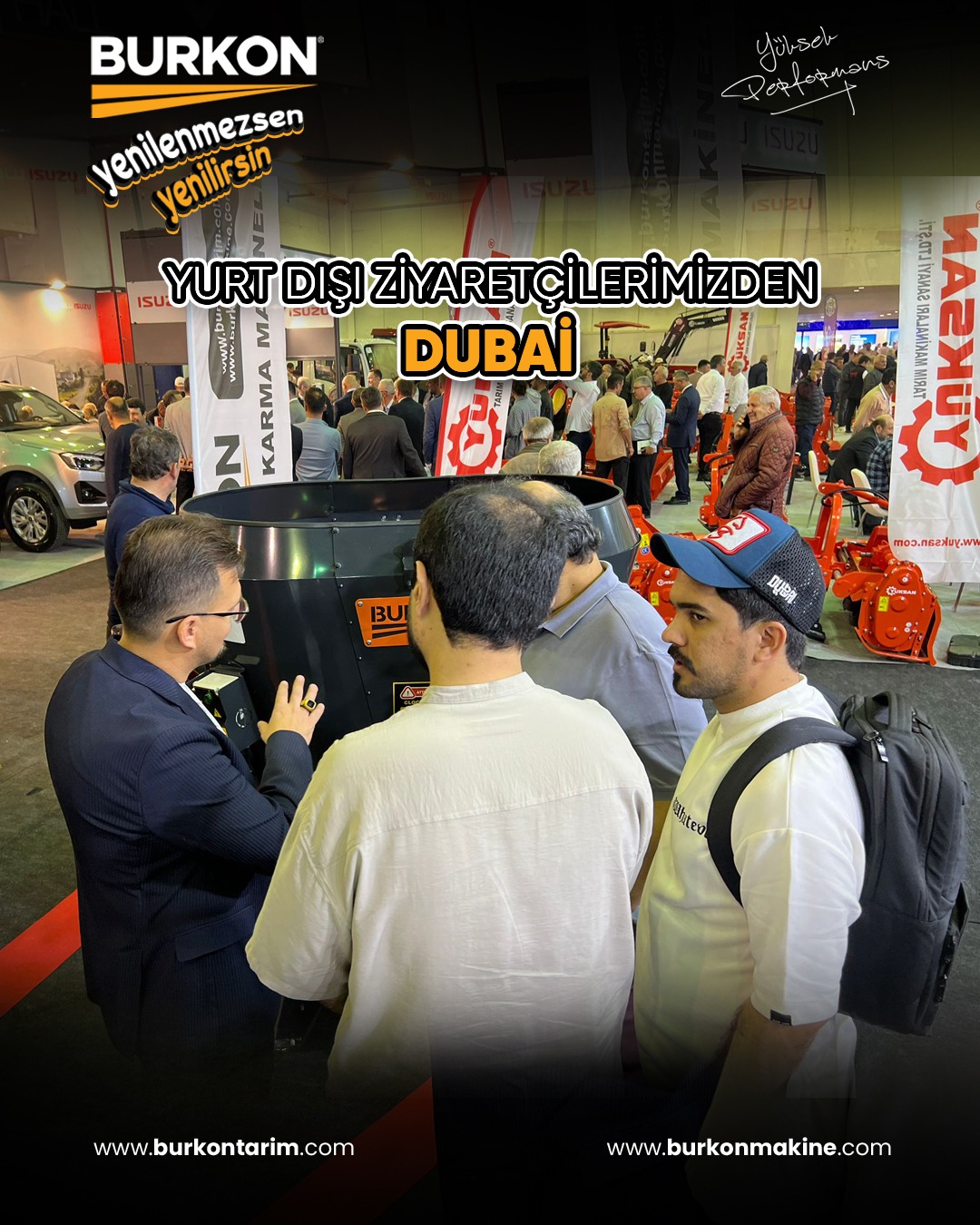 Fuar süresince sadece Türkiye’den değil, farklı ülkelerden gelen birçok yabancı ziyaretçi Burkon standını ziyaret etti. Bu kapsamda Dubai’den gelen heyet, Burkon’un geliştirdiği yeni nesil yem karma makinelerini yakından inceledi.