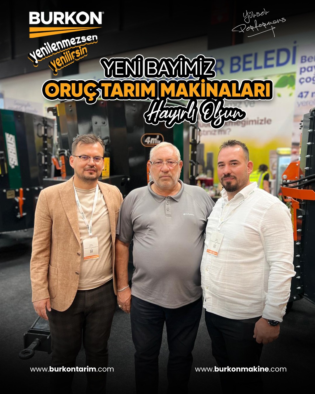 Burkon ailesi olarak, Cahit Oruç ve Oruç Tarım Makine’ye “hayırlı olsun” dileklerimizi iletiyoruz. Hep birlikte daha güçlü, daha verimli ve daha sürdürülebilir bir tarım için çalışmaya devam edeceğiz.