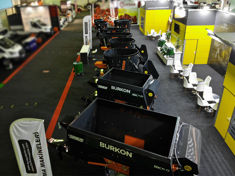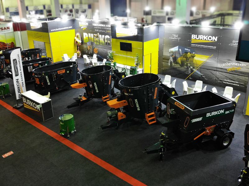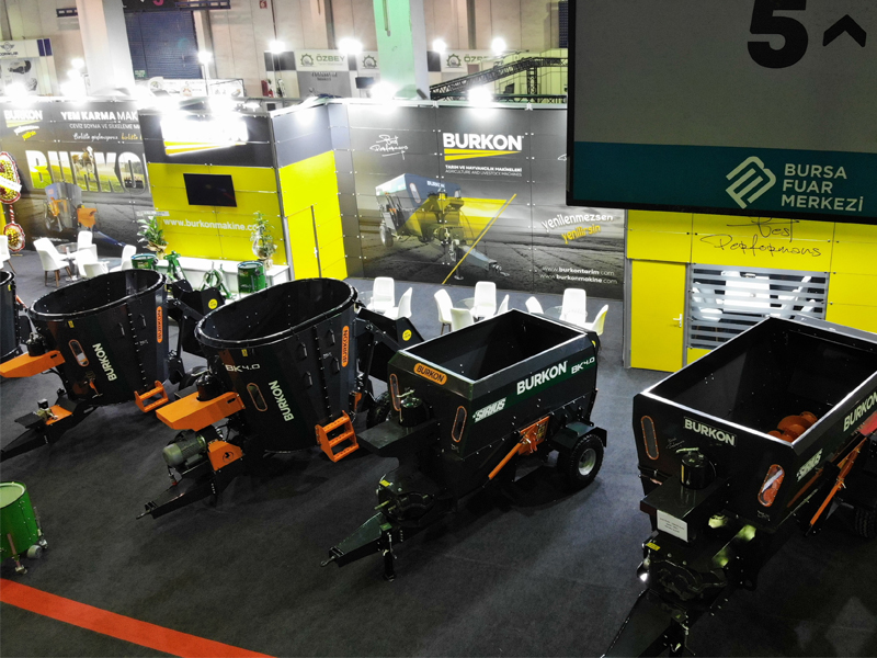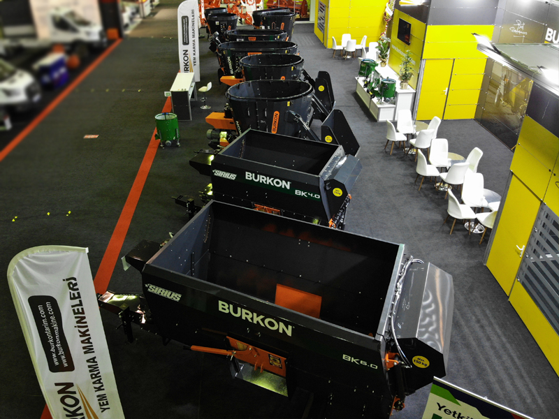 Burkon Tarım Makineleri, fuarda sergilediği yeni nesil yem karma makineleriyle ziyaretçilerin yoğun ilgisini çekmeye devam ediyor.